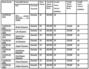 13UY0138-3 Boyama Operatörü (Seviye 3) belgesi, adayların boyama işlemlerini başarıyla yönetebilmeleri için gerekli bilgi ve becerilere sahip olduklarını belgelemektedir. Bu belgeye sahip kişiler, tekstil sektöründe kalifiye personel olarak öne çıkmakta ve işverenler tarafından tercih edilmektedir. Yeterlilik belgesini almak için, adayların belirtilen birimlerden oluşan sınavları geçmeleri gerekmektedir. Sınavlar teorik ve uygulamalı olarak yapılmakta olup başarılı adaylara uluslararası geçerliliği olan mesleki yeterlilik belgesi verilmektedir.