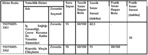 15UY0205-3/A1 İş Sağlığı Güvenliği, Çevre Koruma ve Kalite Yönetim Sistemleri: