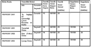 Atkılı Örme Operatörü (Seviye 3) yeterlilik belgesi almak isteyenler için dört temel birim belirlenmiştir. Her bir birim, meslekte başarılı olabilmek için sahip olunması gereken spesifik bilgi ve beceri alanlarını kapsar: